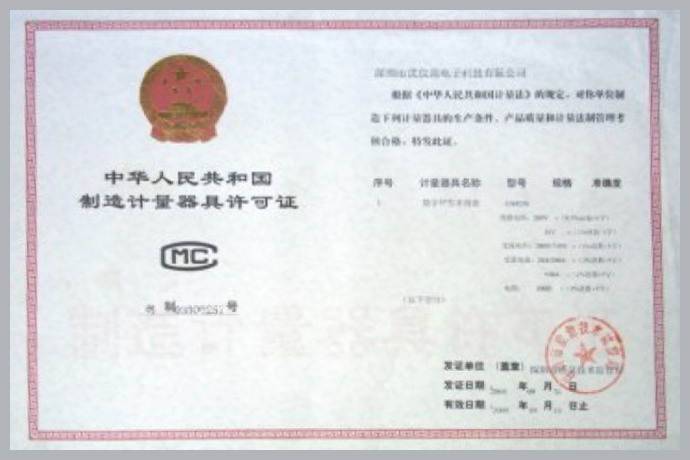 制造计量器具许可证